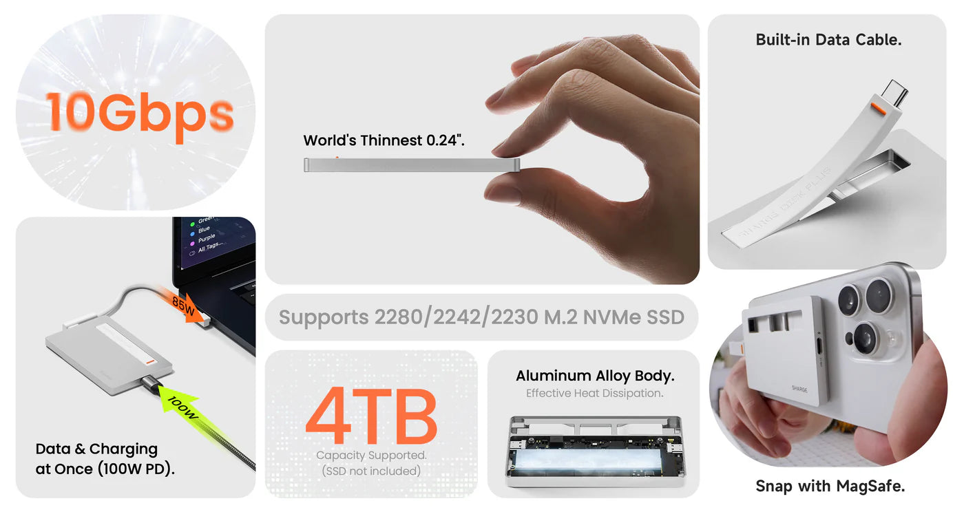 Snap Disk Plus onto any devices with magnetic. Ultra-portable.