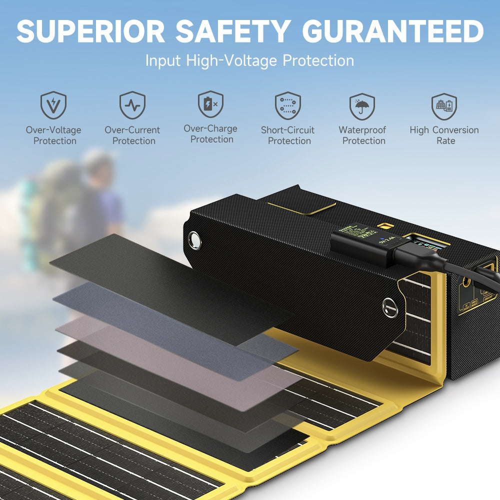 The 10-fold solar panels provides you with 12W max output. Infinite solar energy to get rid of battery life anxiety.