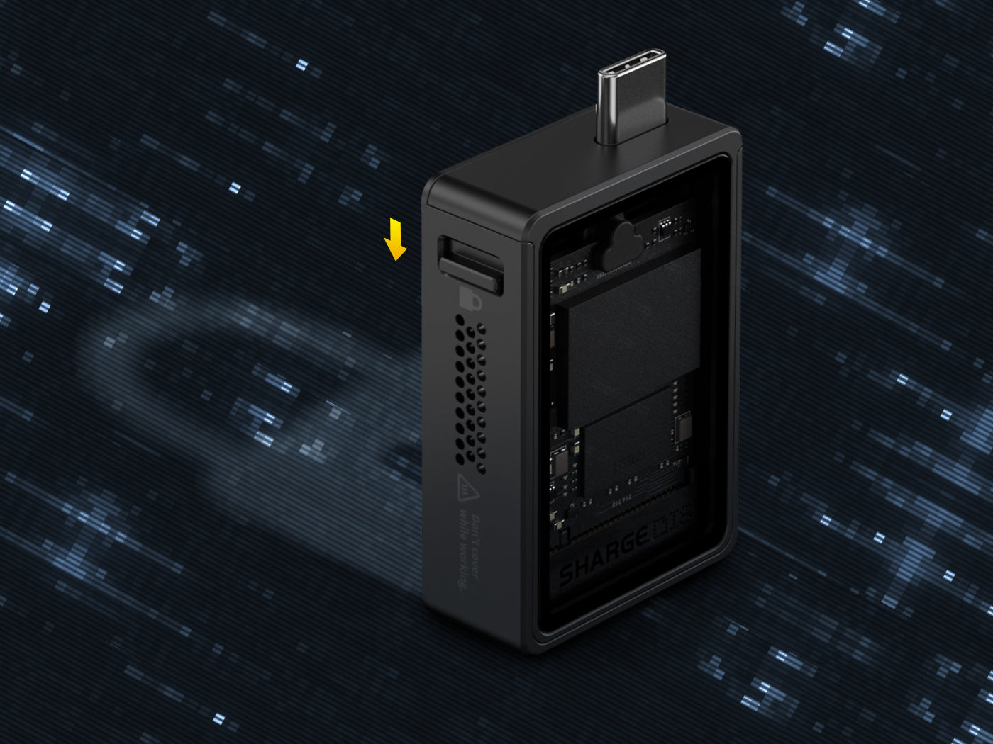 SSD overheating? Not with SHARGE Disk. Built-in 11,000rpm fan cools down your SSD by 20°C.