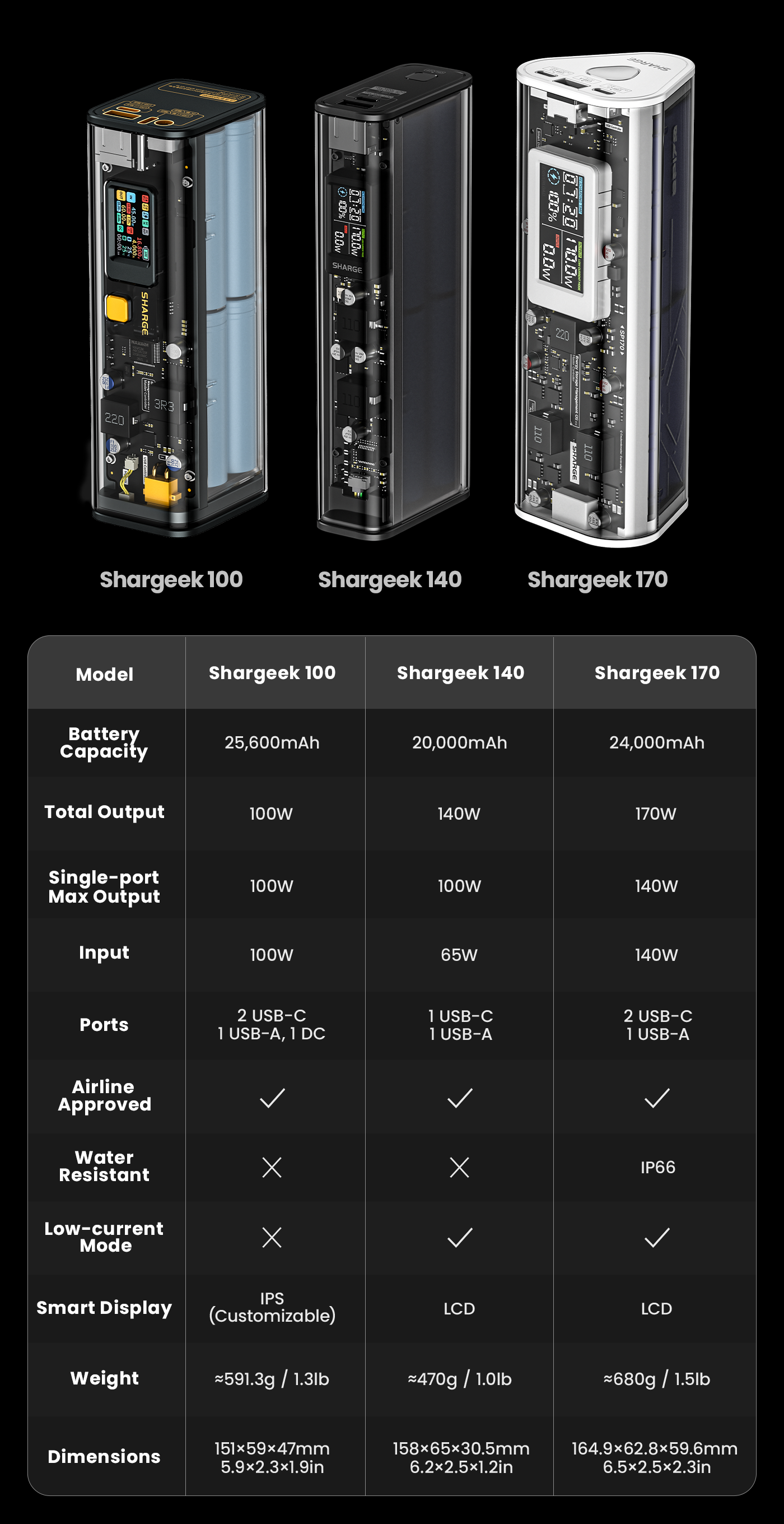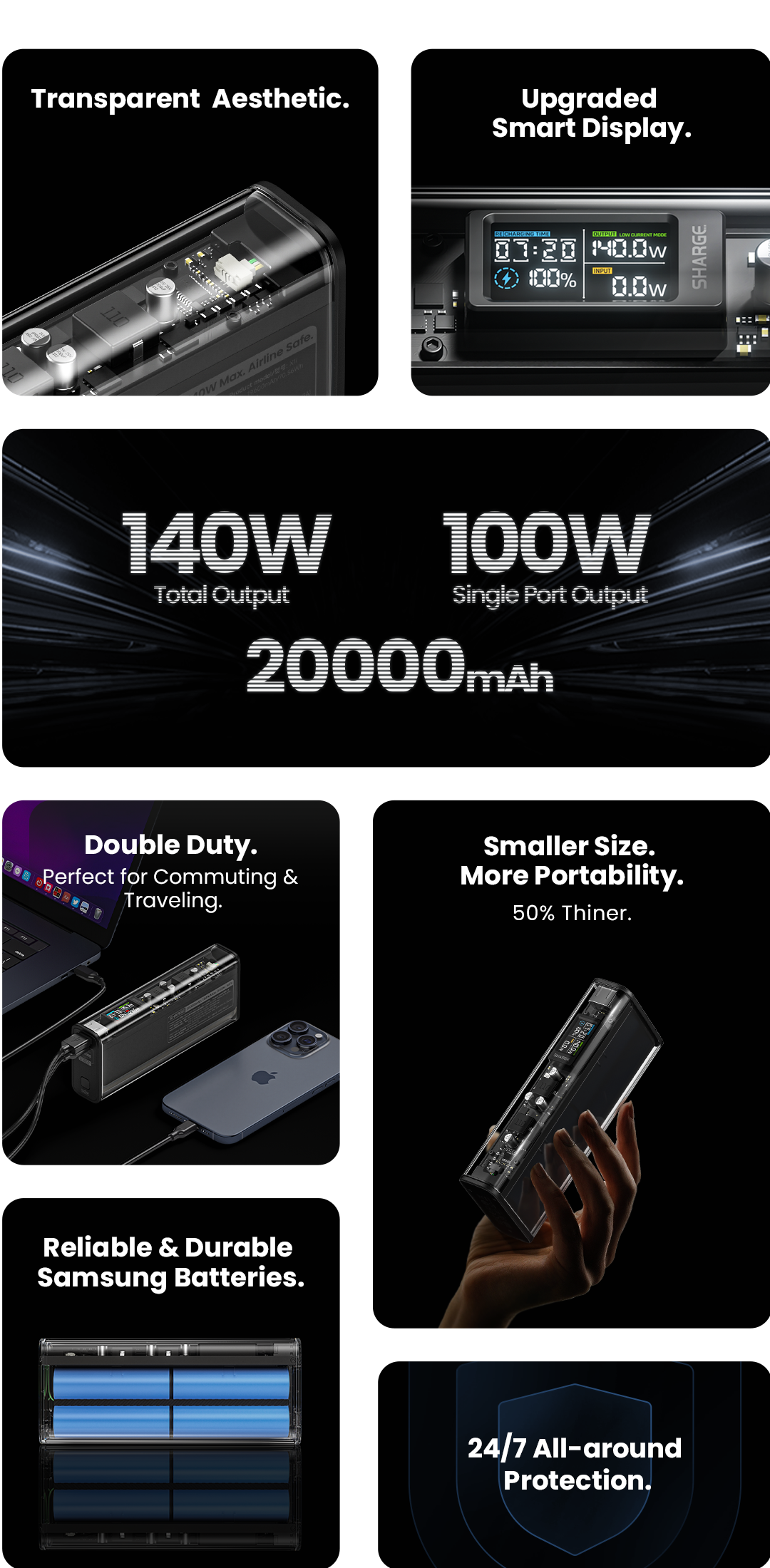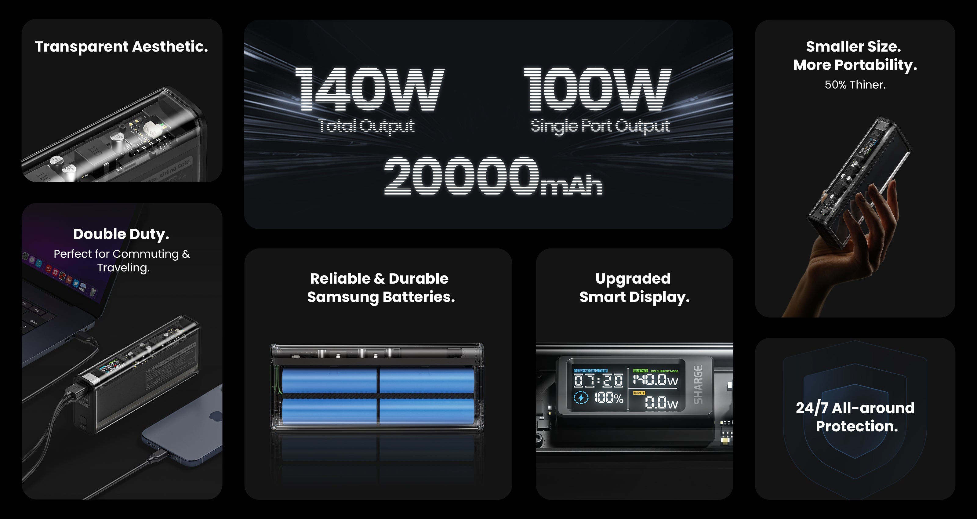 Powered by 4 advanced Samsung 21700 batteries, Shargeek 140 comes with 1.5x longer-lasting battery life, built to last for years.