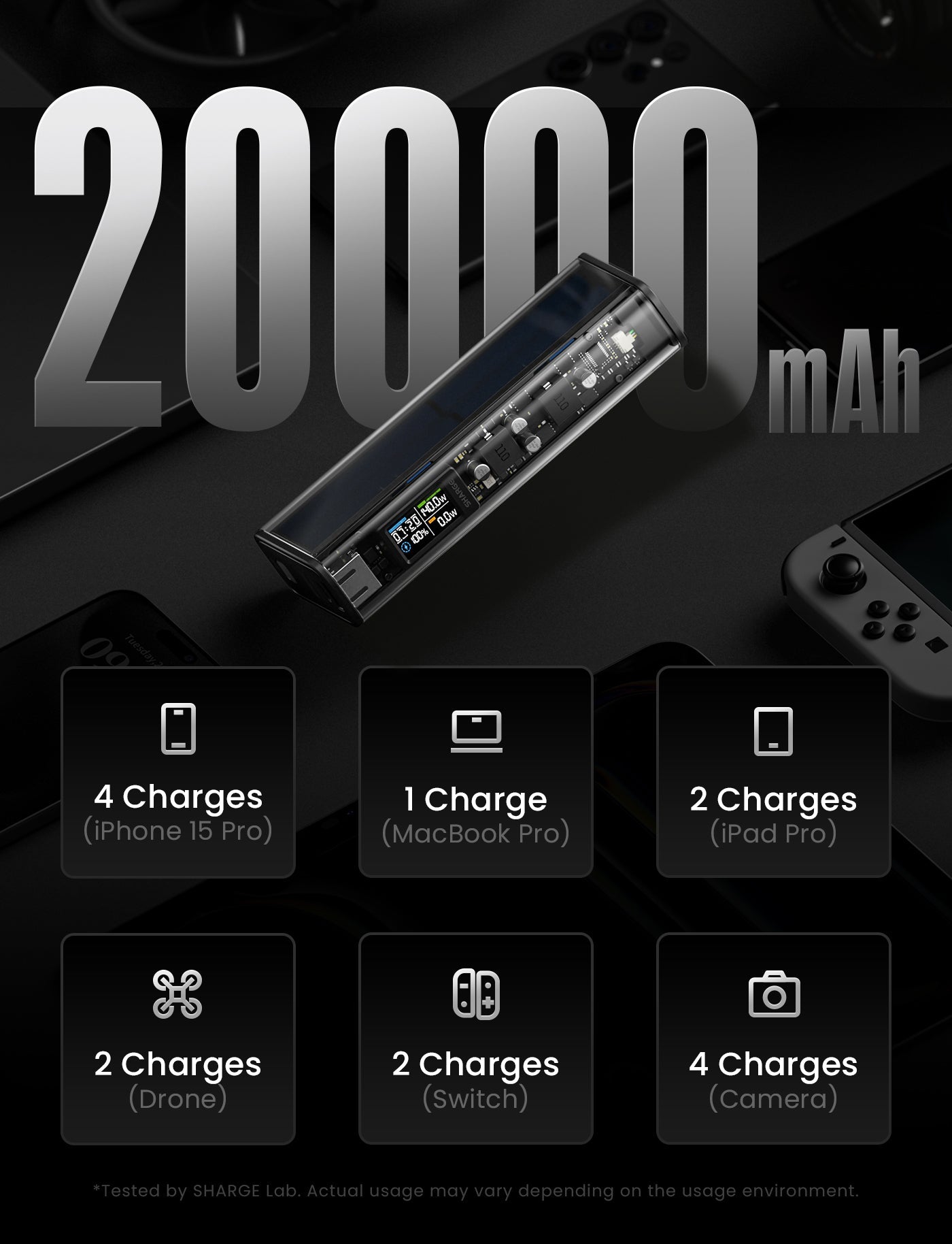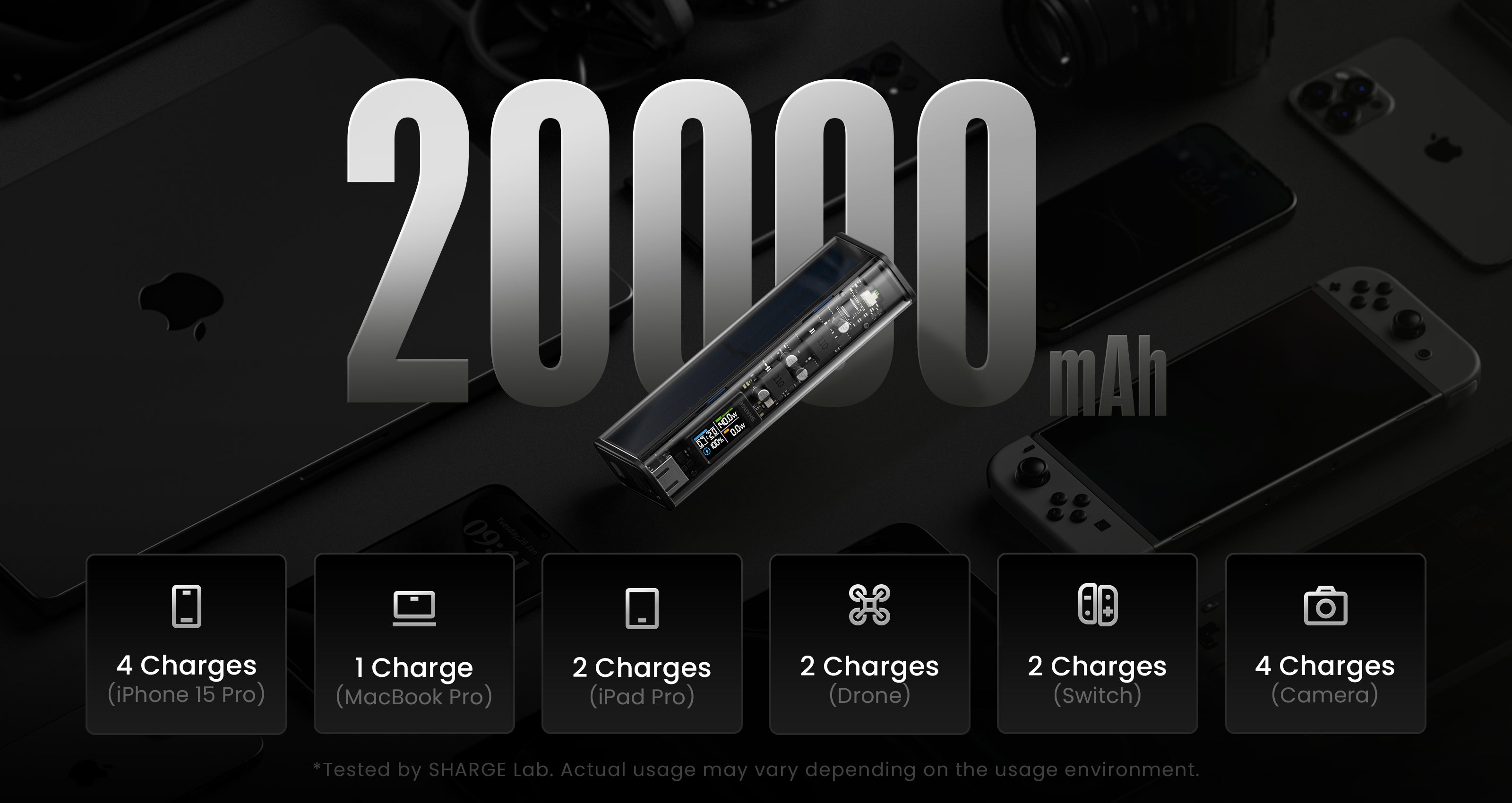 Packed with 20,000mAh / 72Wh to tackle your battery anxiety.
